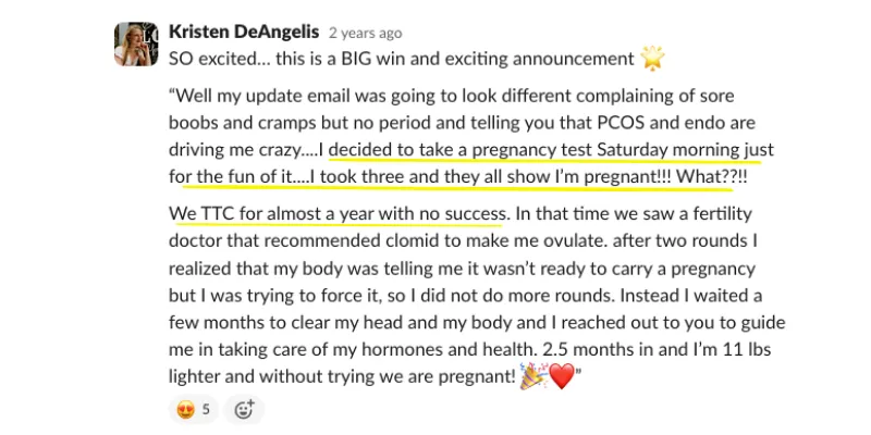 Participate in group discussions and gain insights from two private fertility-focused group calls with members just like you who are trying to conceive. Led by fertility expert Kristen DeAngelis, these sessions are to provide further education, provide group support, and access to ask questions on your TTC journey.